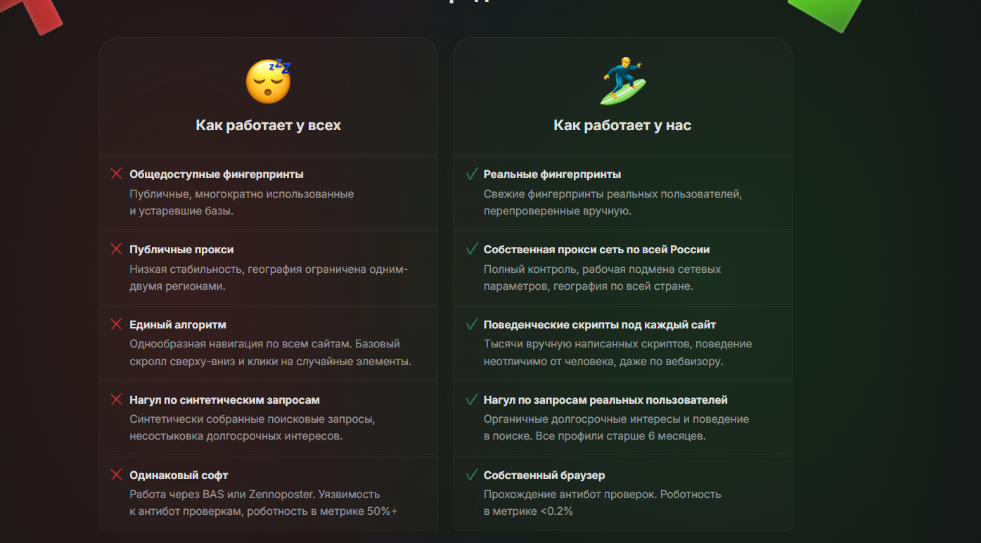 Накрутка ПФ представляет собой набор мероприятий, направленных на имитацию естественного поведения пользователей на сайте. Включает действия, такие как клики, просмотры страниц, время, проведенное на сайте, взаимодействие с контентом и другие активности. Главная цель — создать у поисковых систем впечатление, что сайт популярен и интересен для пользователей, что в свою очередь помогает улучшить его позиции в результатах поиска.