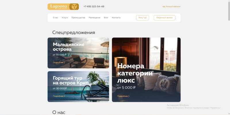 Красивый сайт компании "Lagoona" с анимациями и визуальными эффектами.