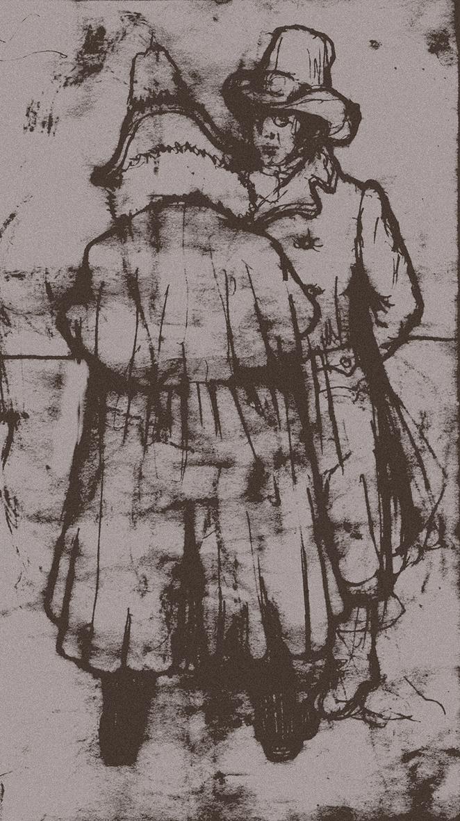 Иллюстрация к произведениям Гофмана, тонированная бумага, цветной карандаш