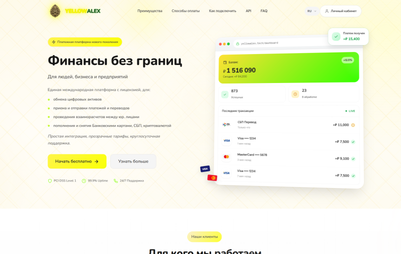 YellowAlex финтех-платформа для фиатных и крипто-платежей