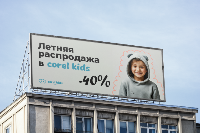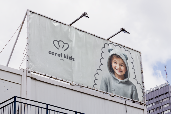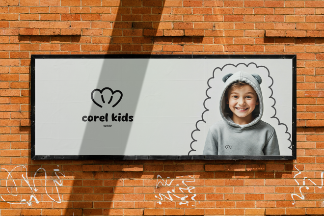 Разработка фирменного стиля для бренда детской одежды "COREL".