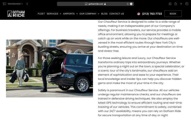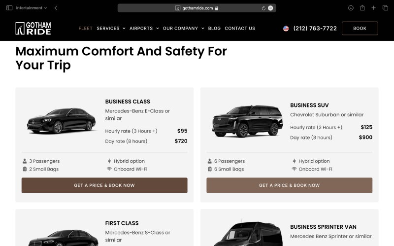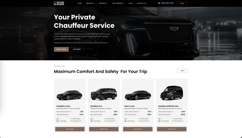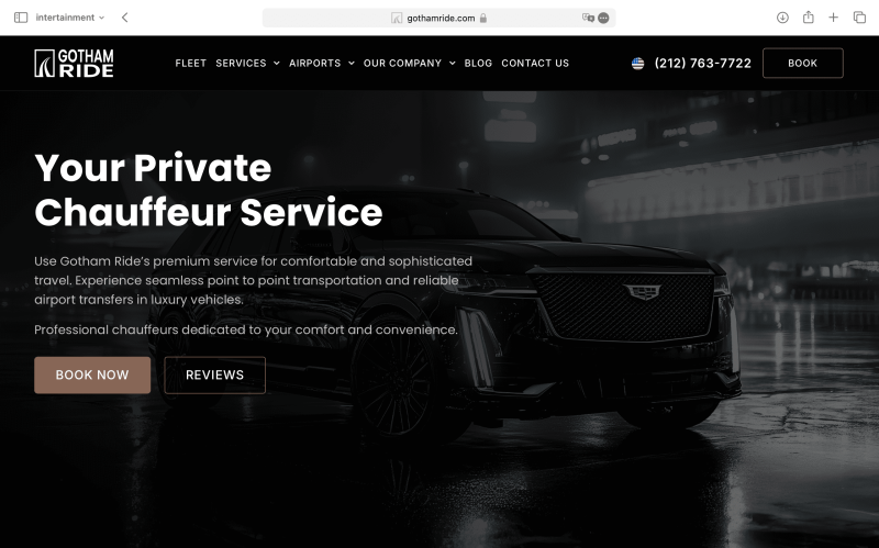 Сайт для компании элитного такси в NewYork. На сайте присутствует возможность бронирования, просмотра услуг, а также личный блог.