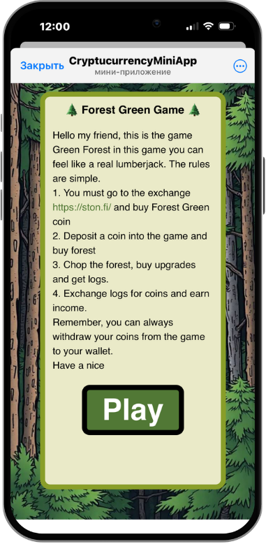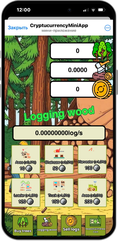 Игра для заработка криптовалюты в формате MiniApp Telegram.