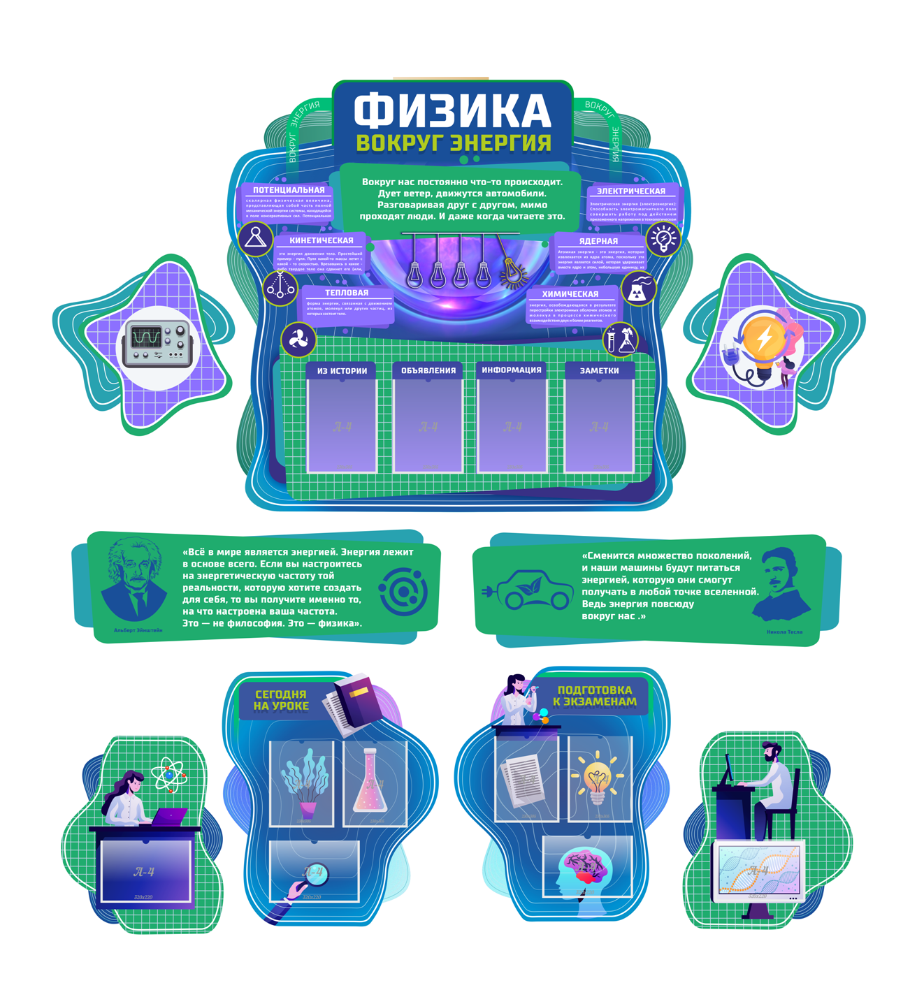 Комплект резных стендов для кабинета физики