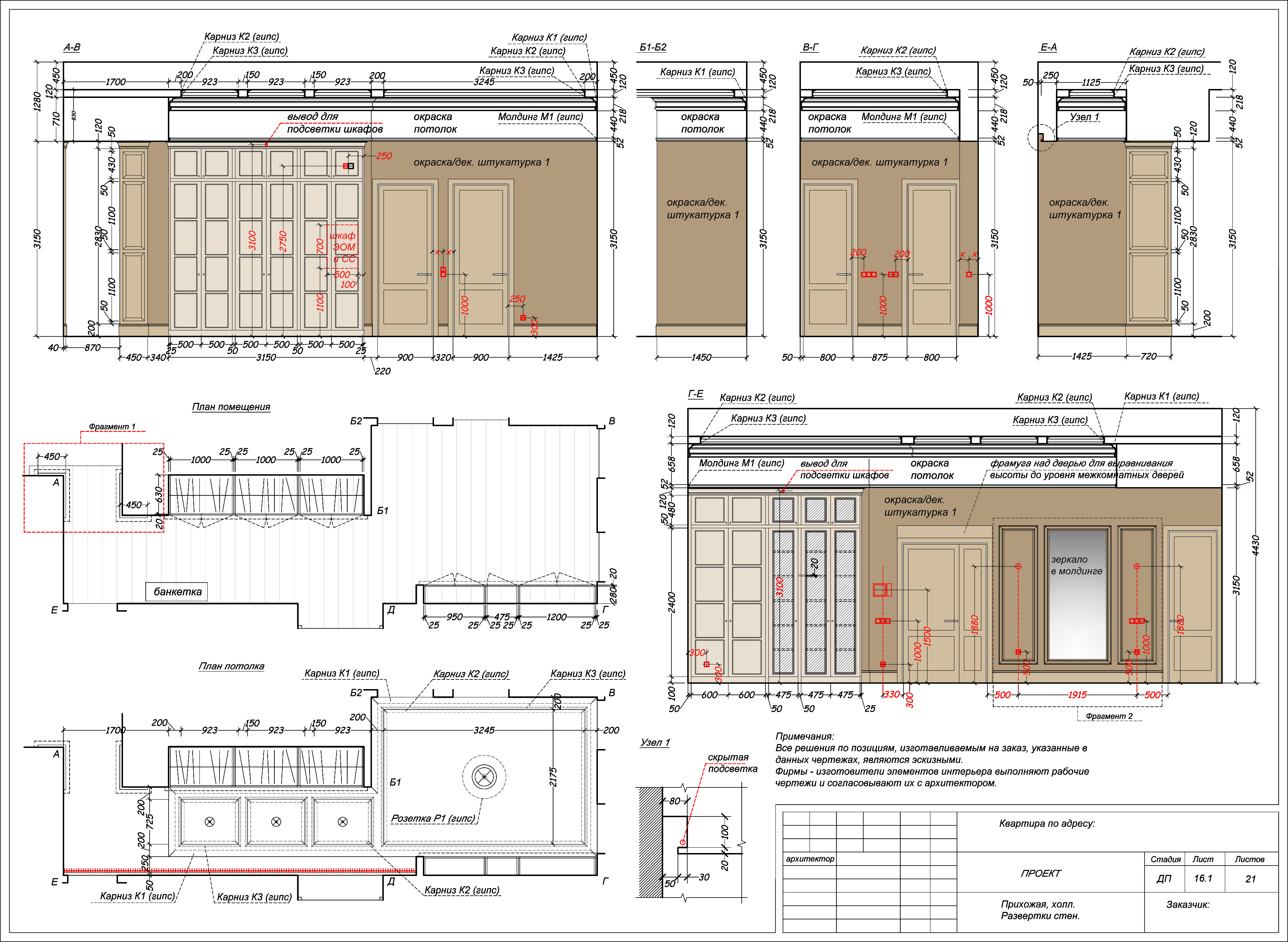 Дизайг-проект развертка стен коридора и прихожей