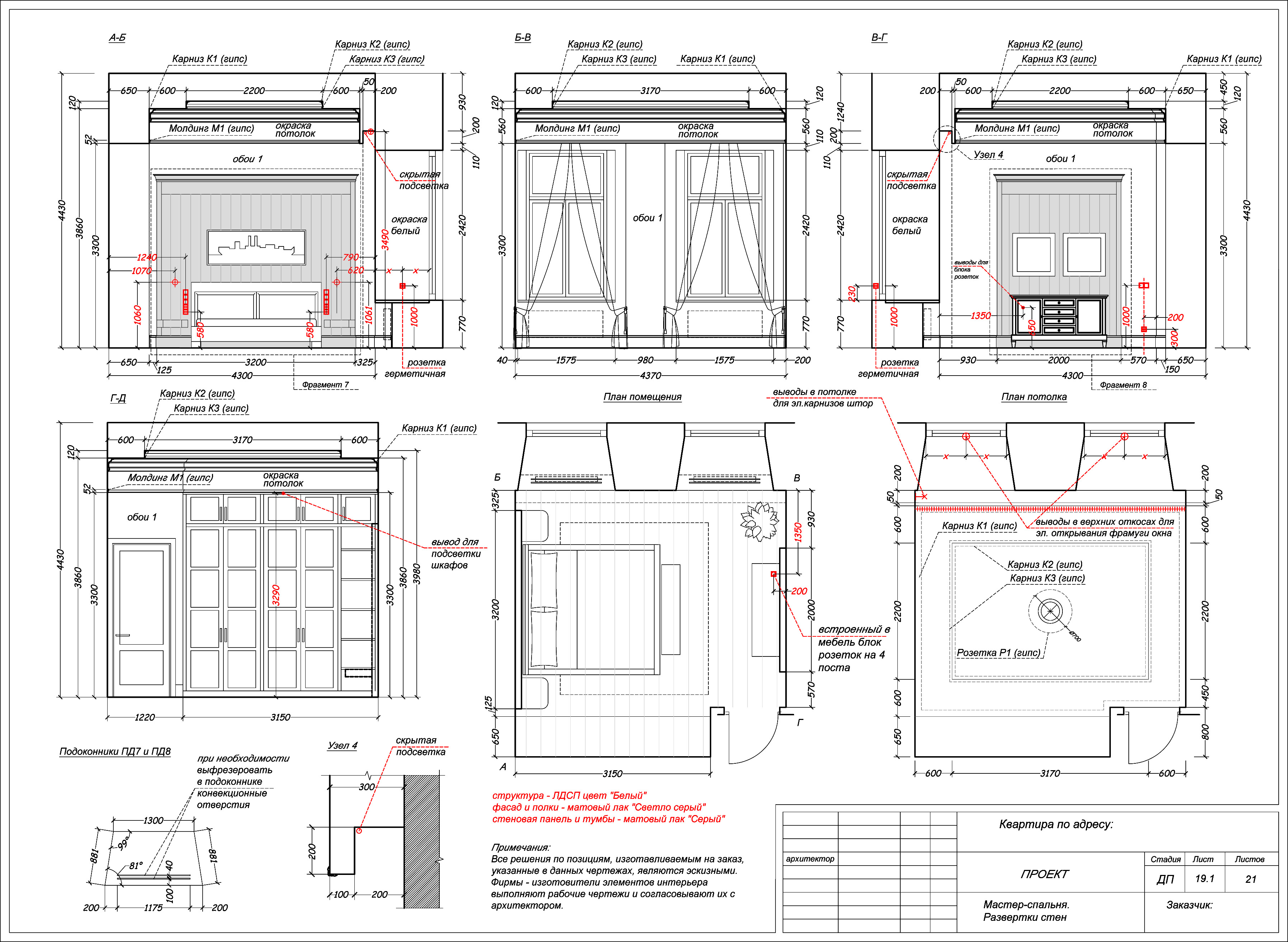 Дизайг-проект развертка мастер-спальни