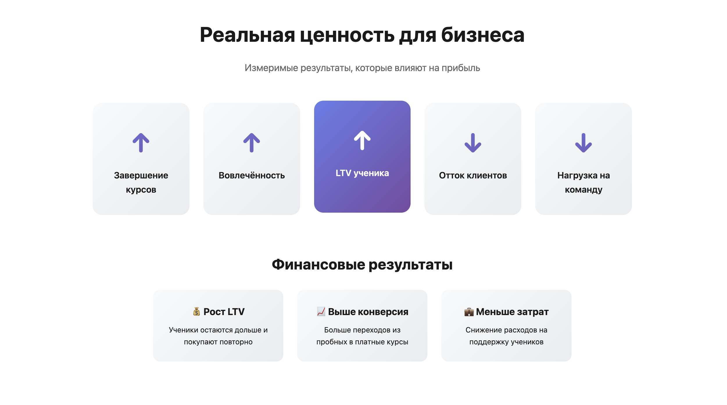 Лендинг для стартапа по персонализации материалов и подхода к обучению