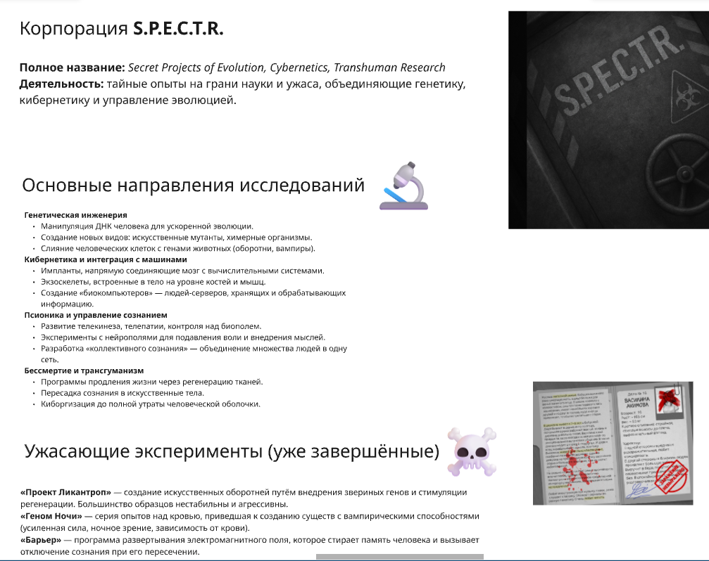 Визуальная новелла. Выступал в рли сцеариста, на основе существующих концептов развил и дополнил лор игры. Оформил и написал текст для главы 1.