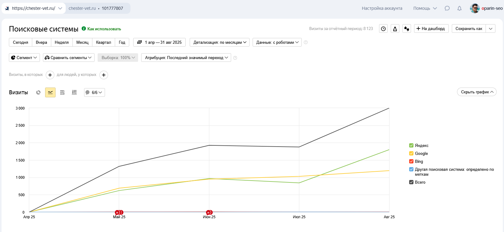 Цель: Улучшить показатели видимости сайта, увеличить органический трафик и помочь клинике Chester стать более заметной и востребованной в интернете.