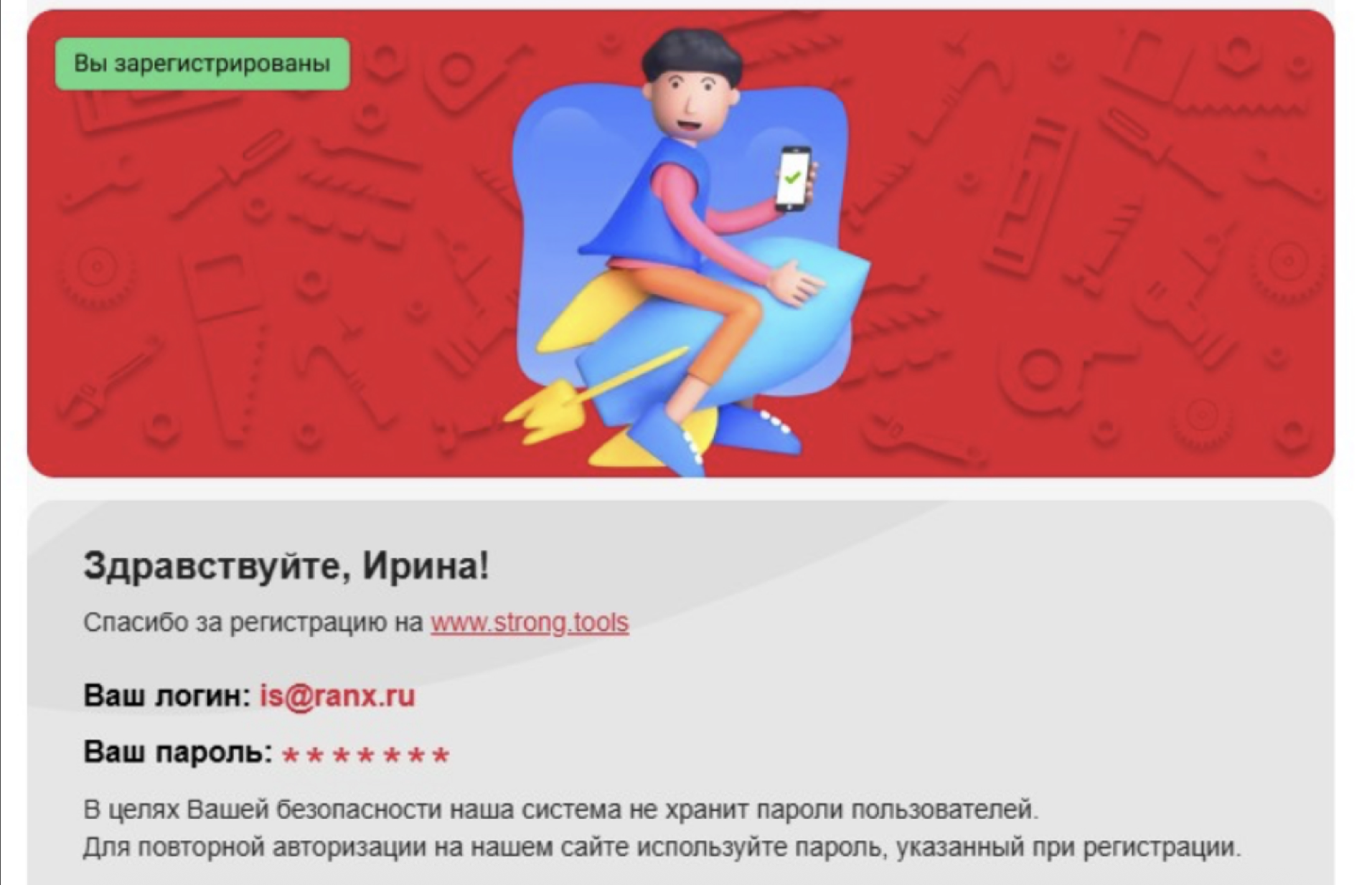 4. Произвели верстку электронных писем. При регистрации на сайте и покупке товаров покупателям приходят электронные письма с подробной информацией. В письме отображается срок обработки заявок, указан график работы компании, содержится информация о составе и стоимости заказа