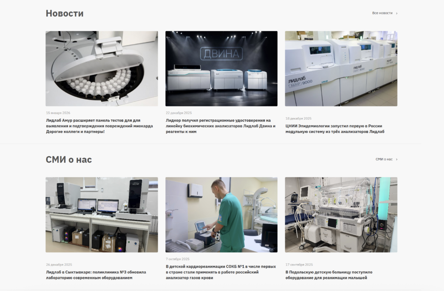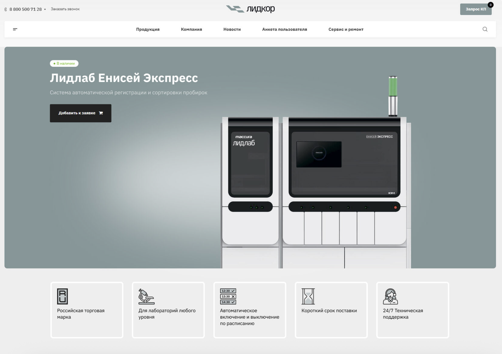 Мы адаптировали готовое решение под задачи Лидкор: оформили дизайн в фирменном стиле, проработали структуру навигации и разделов, добавили новые функциональные блоки, включая сервис подбора значений анализаторов Амур и Енисей. Также были разработаны уникальные карточки товаров, которые используются не только на сайте, но и в коммерческих материалах. Для удобства управления контентом были автоматизированы процессы, включая интеграцию с внешними сервисами (например, раздел Карьера с hh.ru), а также повышена безопасность за счёт двухфакторной аутентификации.