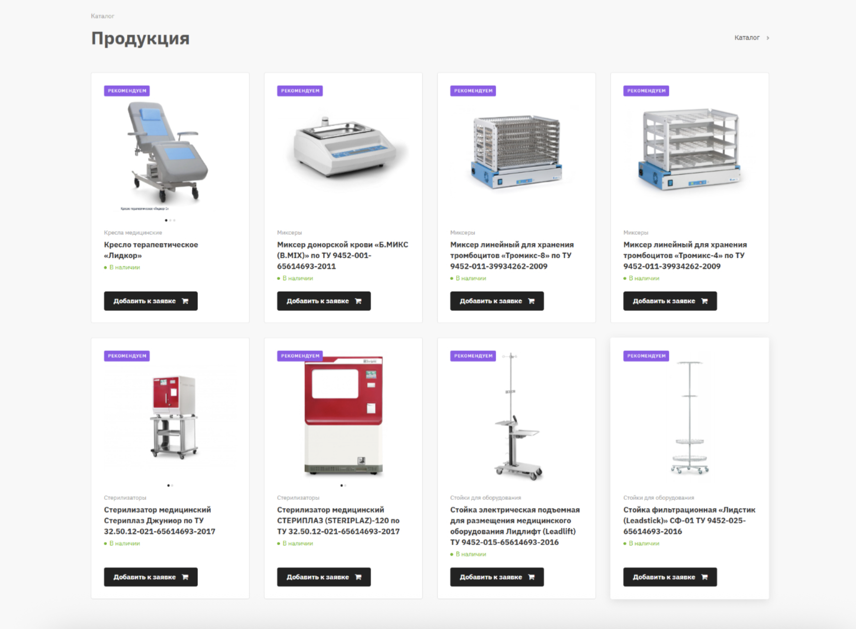 Разработка и поддержка сайта медицинского оборудования