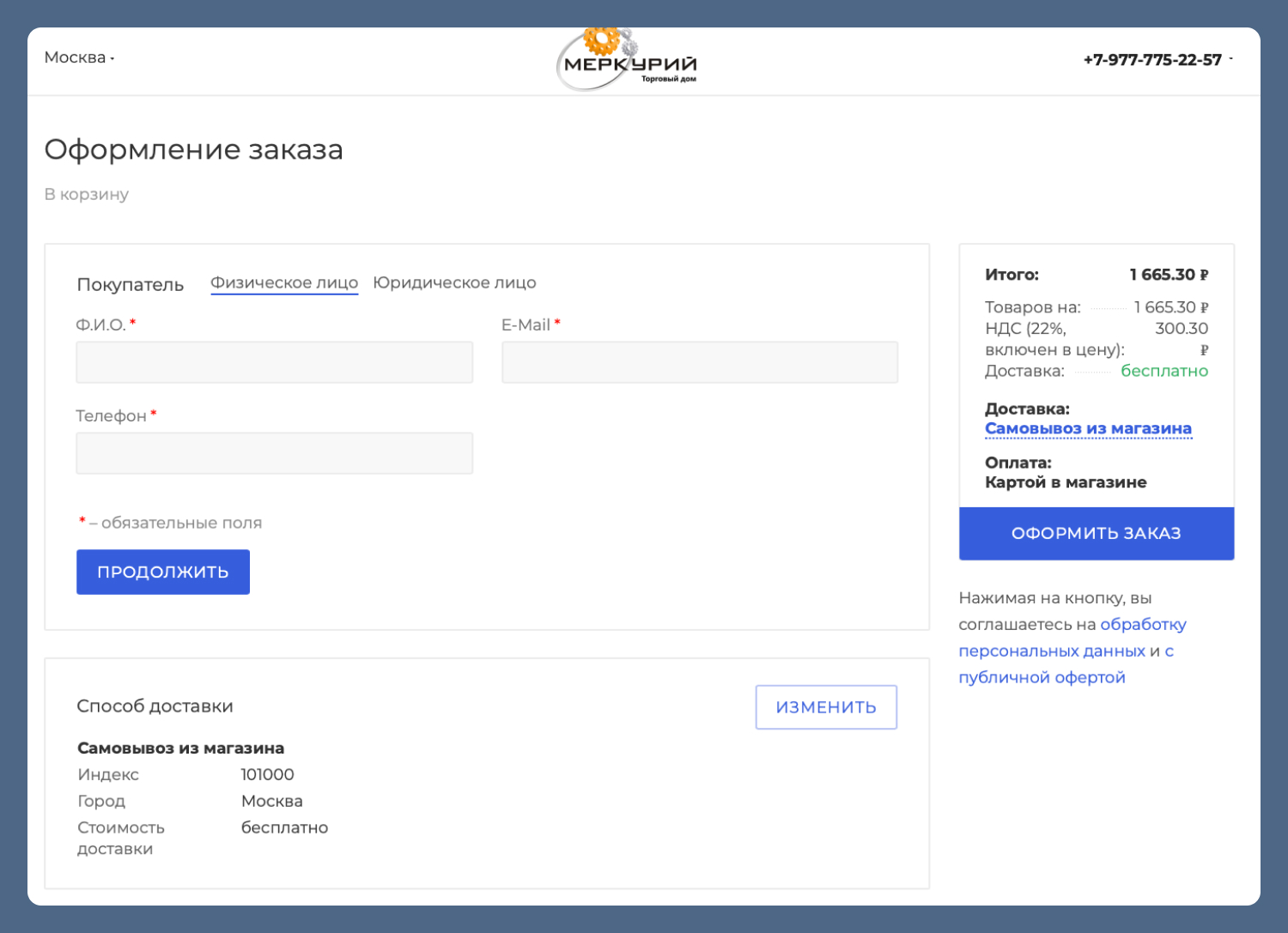 - а также настроить логику оформления заказа