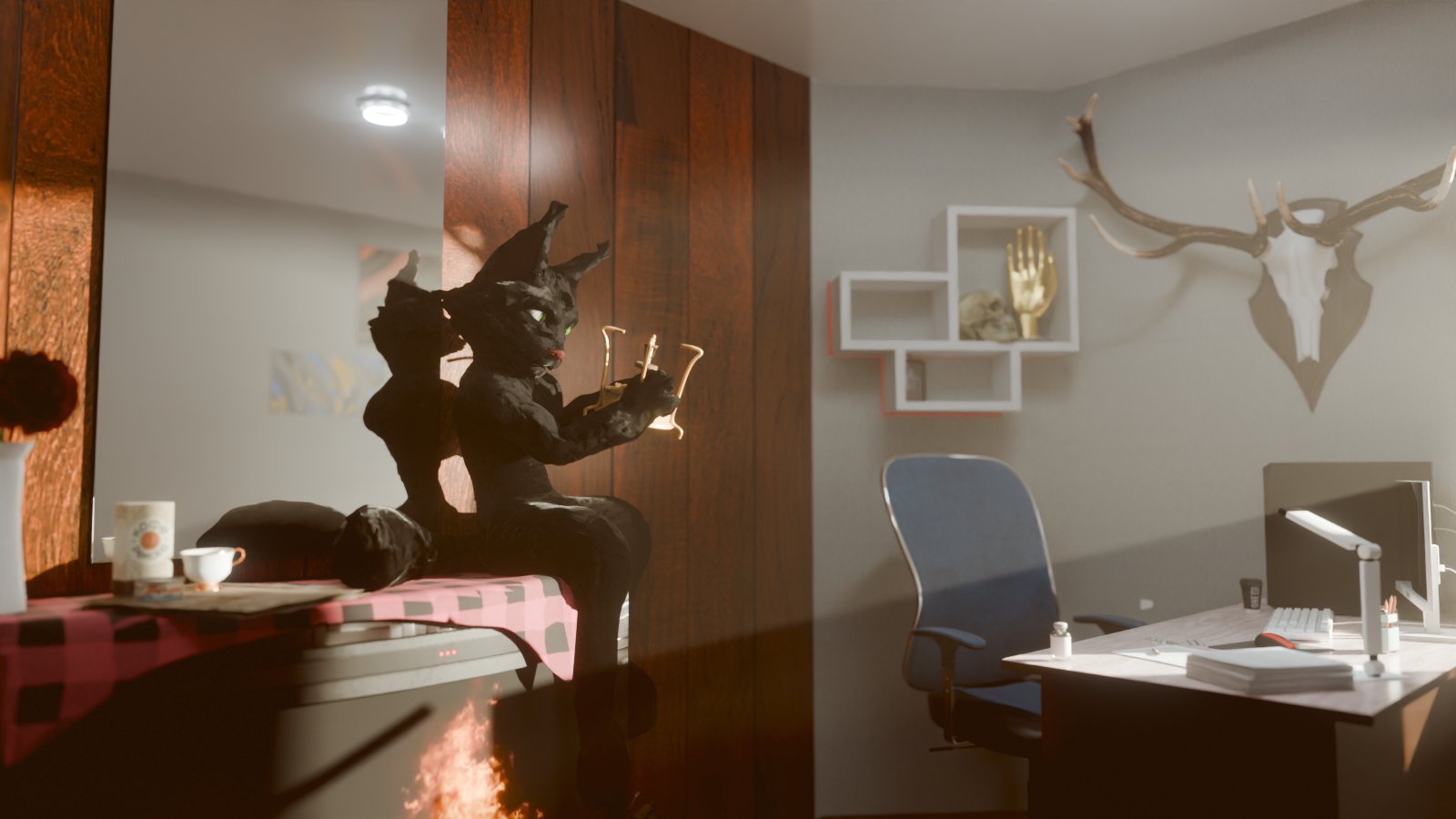 большинство моделей в сцене были сделаны собственноручно, как и главный персонаж на рендере
