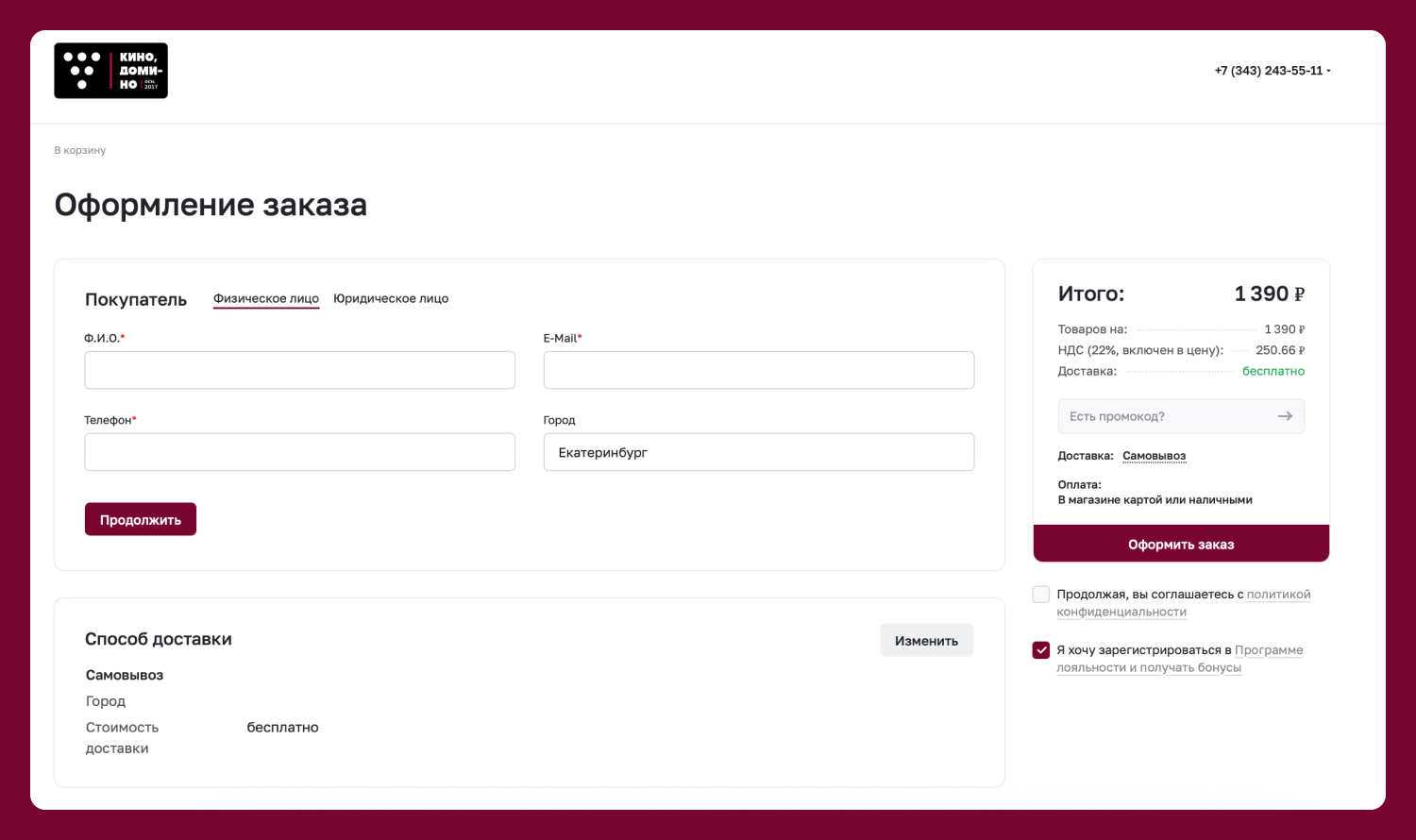 Задача заключалась в создании сайта, который даст возможность не только представить компанию клиента в интернете, но и позволит совершать заказ товаров онлайн и забирать их в удобном магазине (одном из 13 физических точек в городе Екатеринбург)
