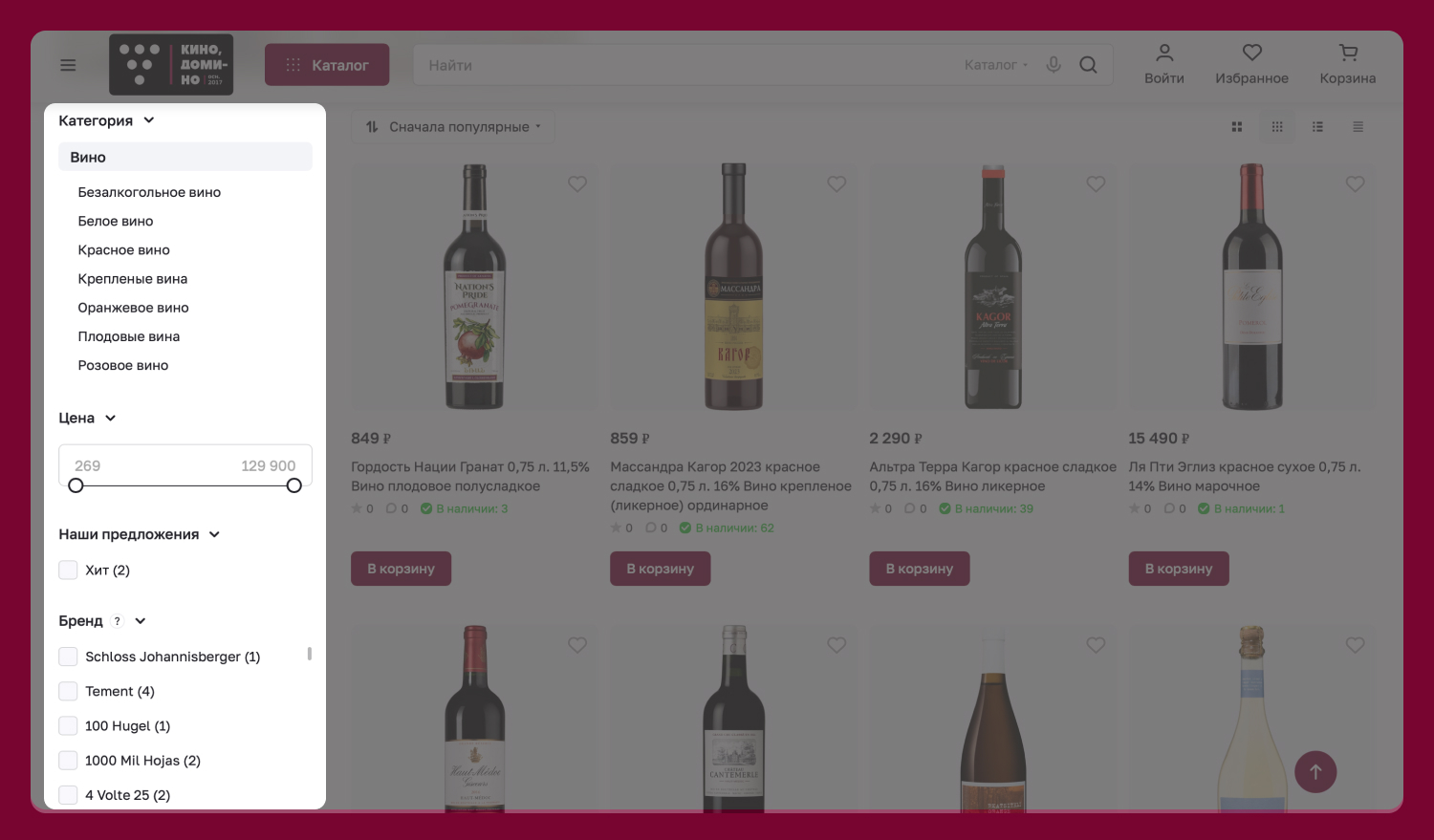 Отдельное внимание уделили фильтрам они помогают быстро находить нужный товар в большом ассортименте.